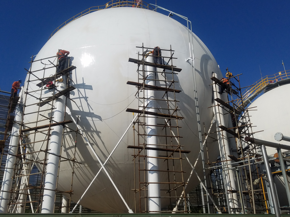 據(jù)了解,該企業(yè)重大危險(xiǎn)源罐裝站球罐的防腐刷漆工作,歷年來都是外部單位負(fù)責(zé)承包,魯西集團(tuán)黨委書記、董事長張金城在季度工作會(huì)議上提出“能不花的堅(jiān)決不花,能自己干的自己干,自己干比花錢讓外邊干干的還要好”的工作要求,氟材料事業(yè)部精心策劃,合理抽調(diào)人員,成立了架桿扎設(shè)突擊隊(duì),從基礎(chǔ)業(yè)務(wù)開始學(xué)習(xí),制定了嚴(yán)密的施工方案。