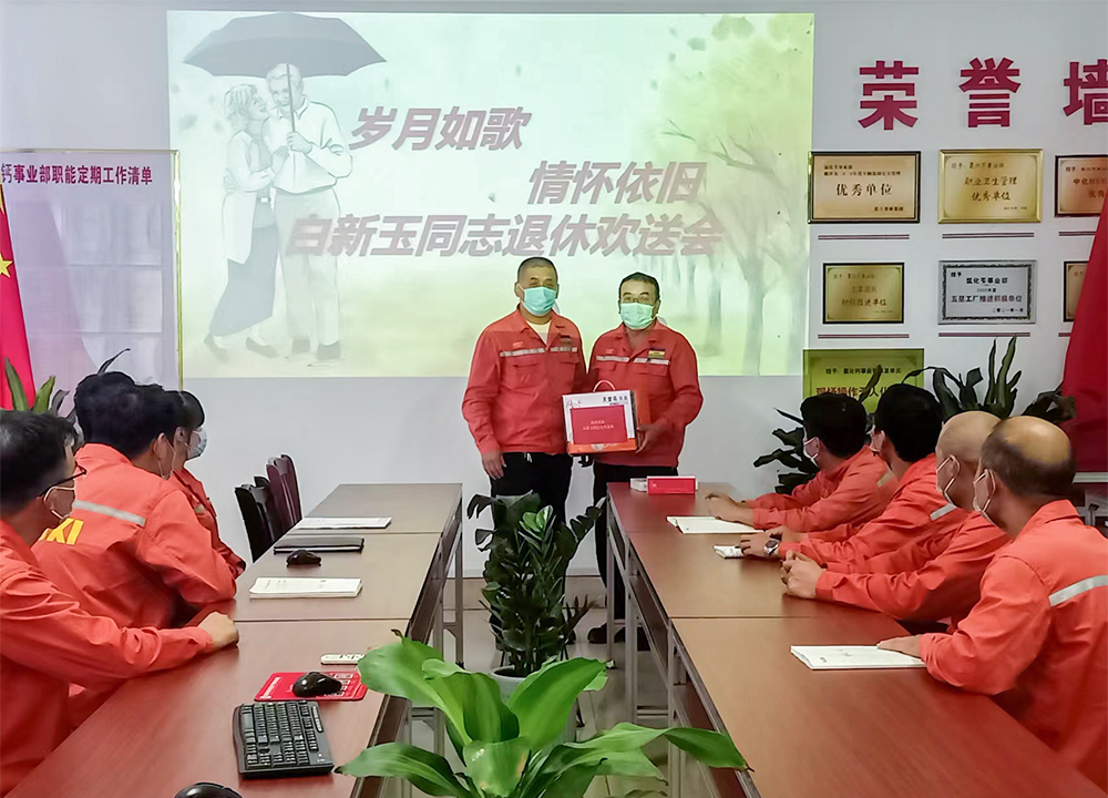 近日,在氯化鈣事業(yè)部會(huì)議室,一場(chǎng)有溫度有熱度的退休員工歡送會(huì)正在如火如荼的開展著。“我是1988年6月28日來到魯西參加工作,到現(xiàn)在已經(jīng)有34年了,在這個(gè)期間我干過操作工,當(dāng)過主任,廠區(qū)的角角落落我走了不知道多少遍,一起工作的同事?lián)Q了一批又一批,這幾十年可以說是一半的時(shí)間都在廠子里,看著企業(yè)一步步發(fā)展壯大,由衷的感到高興,雖然前段時(shí)間已經(jīng)做好了退休準(zhǔn)備,現(xiàn)在要離開企業(yè)了,心里還是很不舍得……”在歡送會(huì)現(xiàn)場(chǎng),退休職工白新玉回想起在廠工作的日日夜夜有些哽咽。事業(yè)部對(duì)白新玉同志多年來為企業(yè)做出的貢獻(xiàn)表示感謝,并為其贈(zèng)送紀(jì)念品,同事們也紛紛送上祝福。